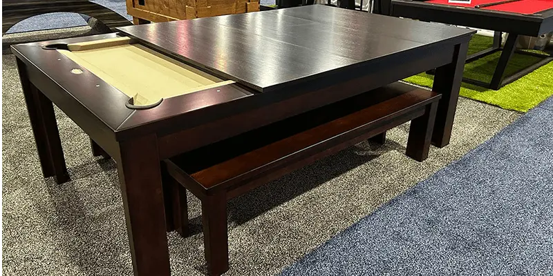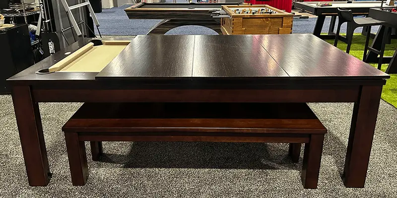 The Sharon Pool table features modern style enclosed solid wood rail system with flat paneled apron with pedestal base legs. Available in 7ft only… It is the perfect solution for small spaces.