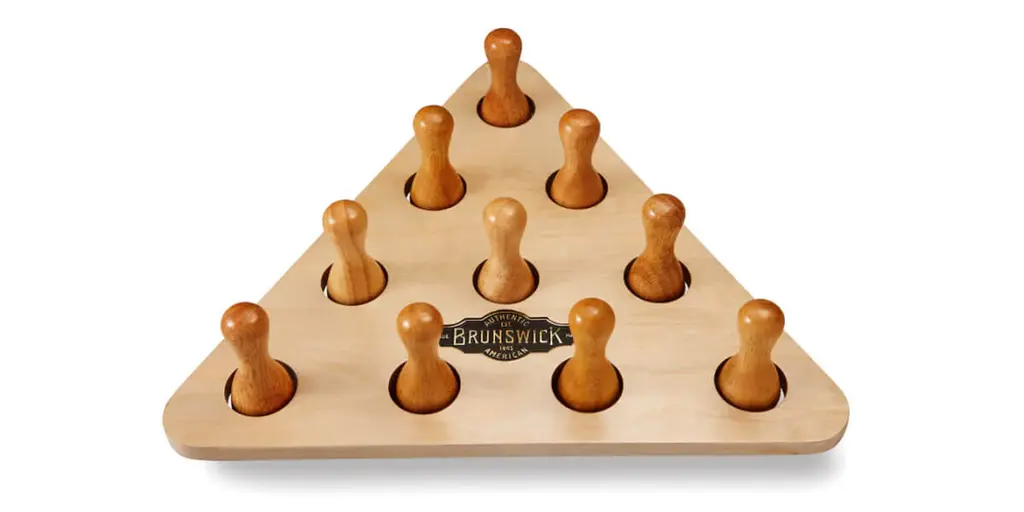 Turn one classic game into two with Brunswick’s Shuffleboard Pins. Crafted out of solid rubberwood, this miniature bowling set includes a wooden rack for easy set-up and 10 matching pins – adding whole new level of competition to your shuffleboard table.