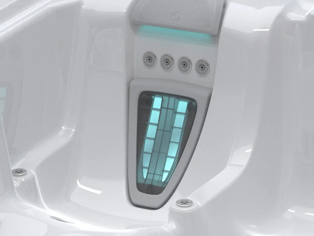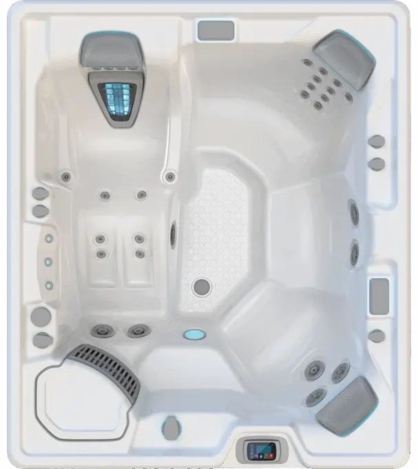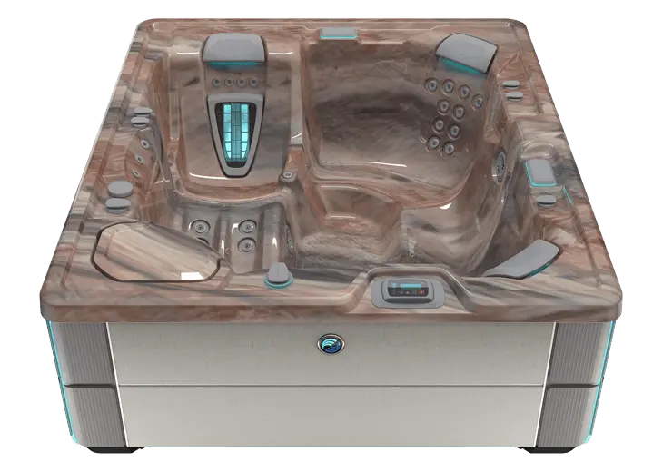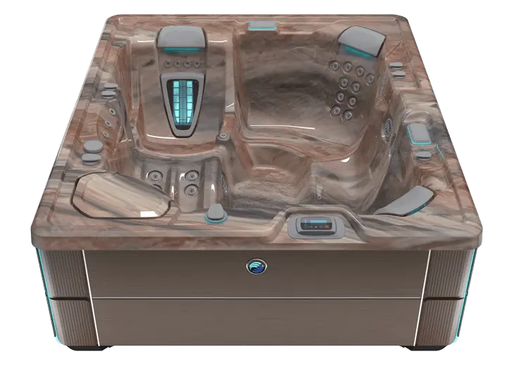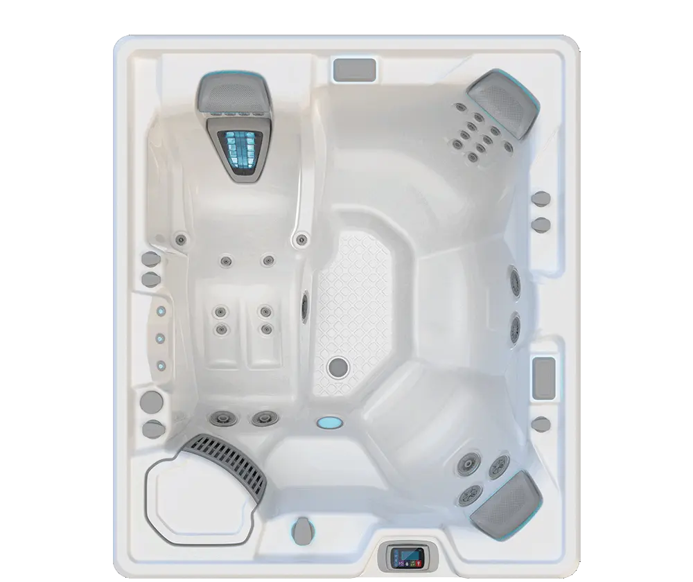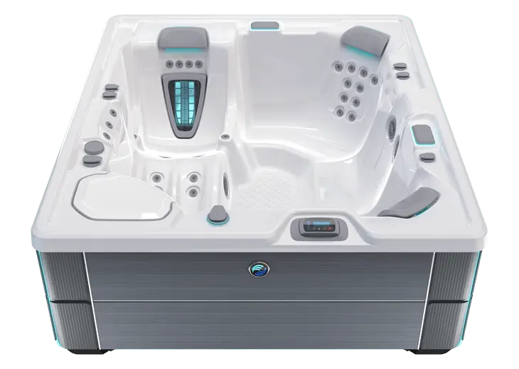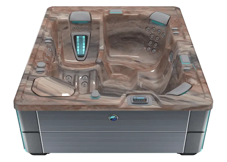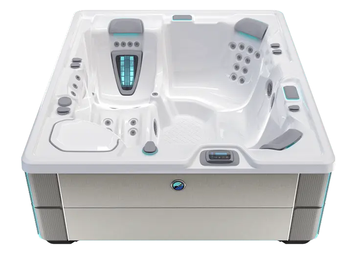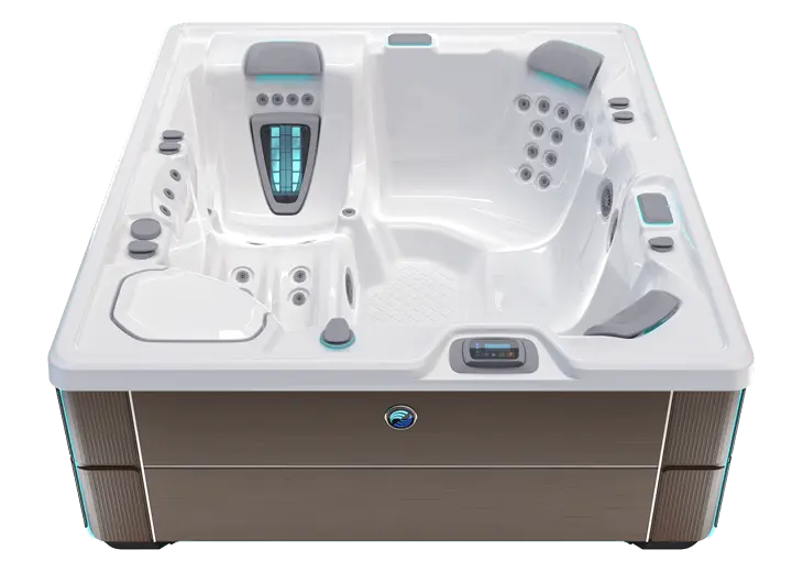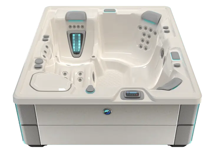 The spacious Sovereign features five seats in a rectangular shape to fit tighter spaces. It includes a lounge with the Moto-Massage® DX jet and two luxurious corner seats.