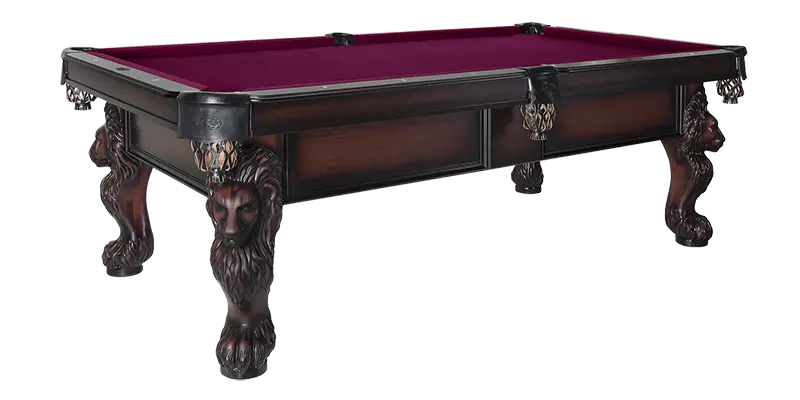 The St. George Pool table is made from Solid Wood and features ornate carving details on apron, frame and legs. All Olhausen Pool tables are hand-crafted at our 250,000 sq. ft. manufacturing facility in Portland, TN and feature Accu-Fast Cushions and our Lifetime Warranty.