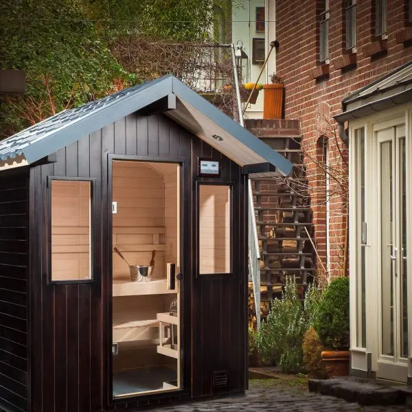The Finnleo Terrace sauna provides a high quality, attractive sauna built to withstand the elements at a very affordable price. With an Espresso treated Hemlock exterior, natural Hemlock interior, weatherproof polymer roof, Viki heater & SaunaLogic control and several other features, this sauna in a perfect addition to the deck or patio.