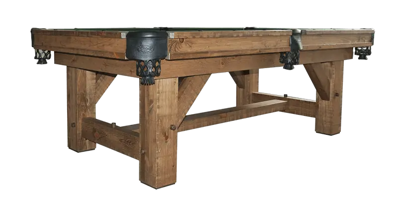 The Timber Ridge Pool Table is made from Solid Pine and features rustic characteristics of Rough-Sawn Pawn. The rail and apron are made with reclaimed wood from old barns and out buildings sourced from the North East United States. All Olhausen Pool tables are hand-crafted at our 250,000 sq. ft. manufacturing facility in Portland, TN and feature Accu-Fast Cushions and our Lifetime Warranty.