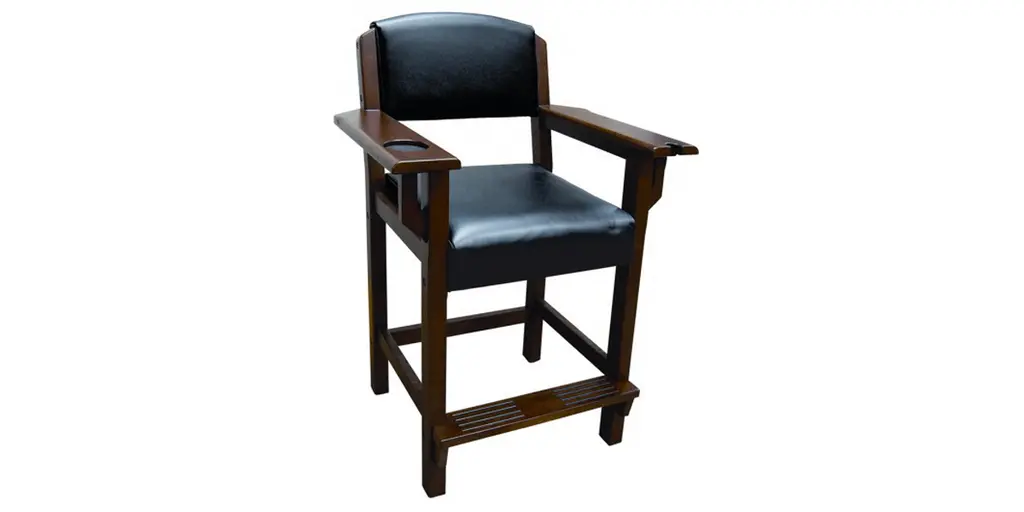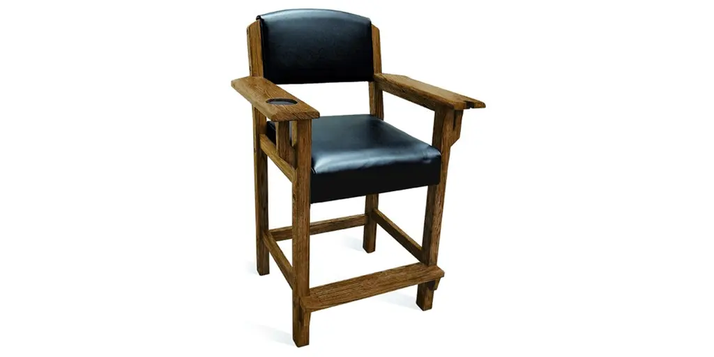 Take a seat while your opponent tries to run the table. Featuring a plush seat and back, a drink coaster built into one arm and cue holder in the other, the Traditional Player's Chair is the perfect place to wait your turn. You'll sit high enough to see all the action with its 27" seat height. Offered in beautiful chestnut, espresso and rustic dark brown finishes. Some assembly required.