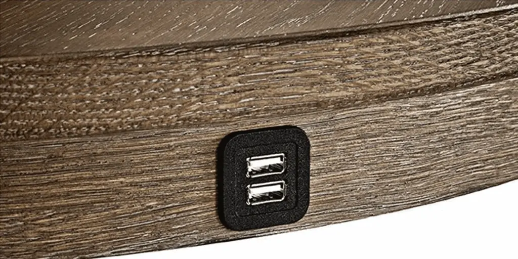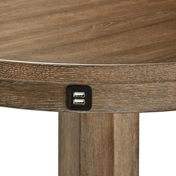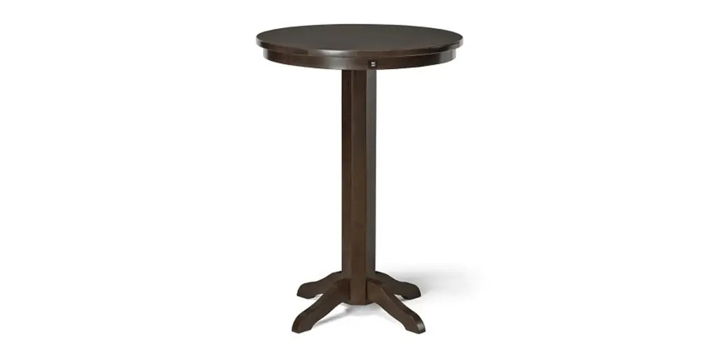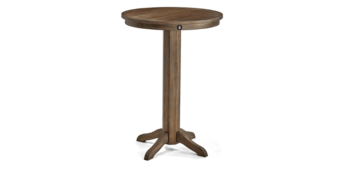 With timeless style and comfort, the Traditional Pub Table completes any game room setting. This table features a side mounted USB port for charging your electronic devices. A 30" round top with a smooth finish, a 42" height, and an eclectic prism shaped solid wood pedestal and base completes the look. It is available in Espresso and Rustic Dark Brown finishes