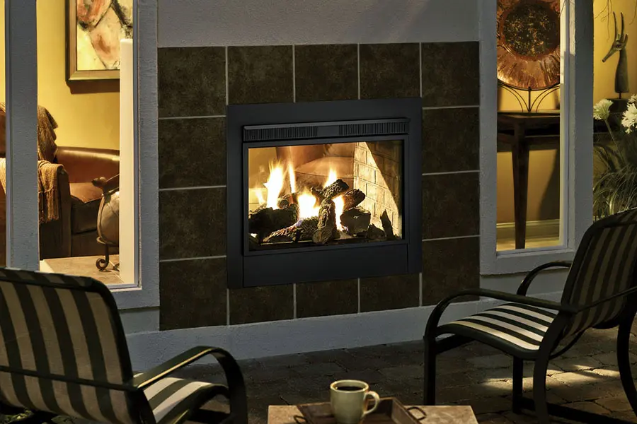 Enjoy the fire yearlong, from either side. Venting in the Twilight see-through indoor/outdoor fireplace gives you freedom in designing two spaces, including windows above the fire to expand fireside views.