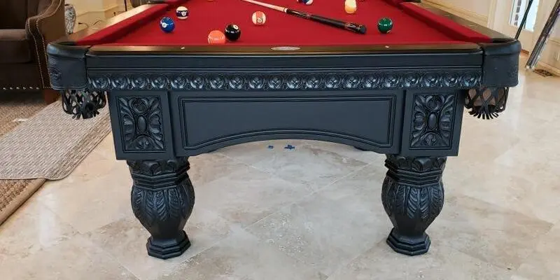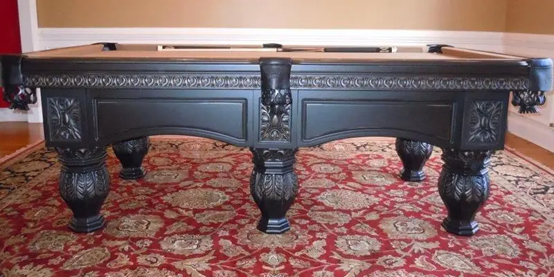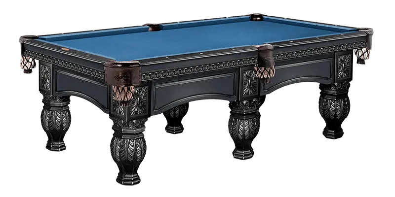 The Venetian Pool table is made from Solid Wood and features ornate carving details on apron, frame and legs. All Olhausen Pool tables are hand-crafted at our 250,000 sq. ft. manufacturing facility in Portland, TN and feature Accu-Fast Cushions and our Lifetime Warranty.