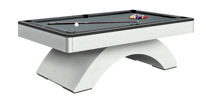 The Waterfall Pool table features modern style enclosed solid wood rail system with flat paneled apron with pedestal base legs. All Olhausen Pool tables are hand-crafted at our 250,000 sq. ft. manufacturing facility in Portland, TN and feature Accu-Fast Cushions and our Lifetime Warranty.