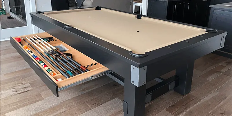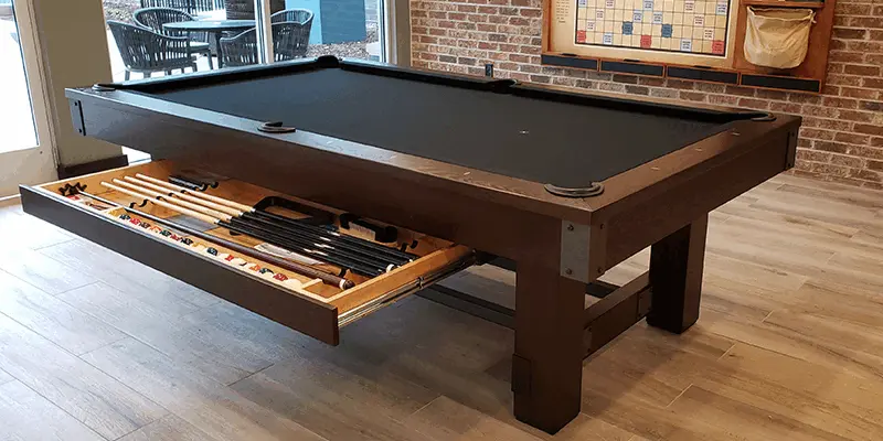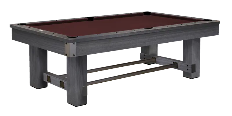 The Youngstown Pool Table is made from Solid Wood and features modern style enclosed solid wood rail system with flat paneled aprons, pedestal base legs with metal plates on apron corners and legs with metal cross bar. All Olhausen Pool tables are hand-crafted at our 250,000 sq. ft. manufacturing facility in Portland, TN and feature Accu-Fast Cushions and our Lifetime Warranty.